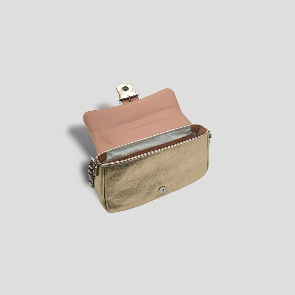 O couro utilizado na confecção dessa bolsa é de alta qualidade, garantindo durabilidade e resistência. Além disso, a cor dourada traz um toque de sofisticação e elegância ao produto.