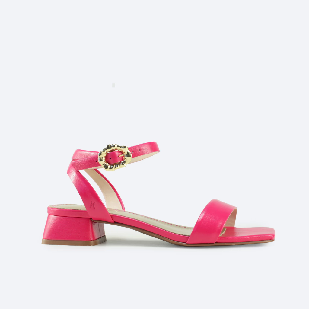 Sandália Pink de Couro com Salto Baixo – Conforto e Versatilidade