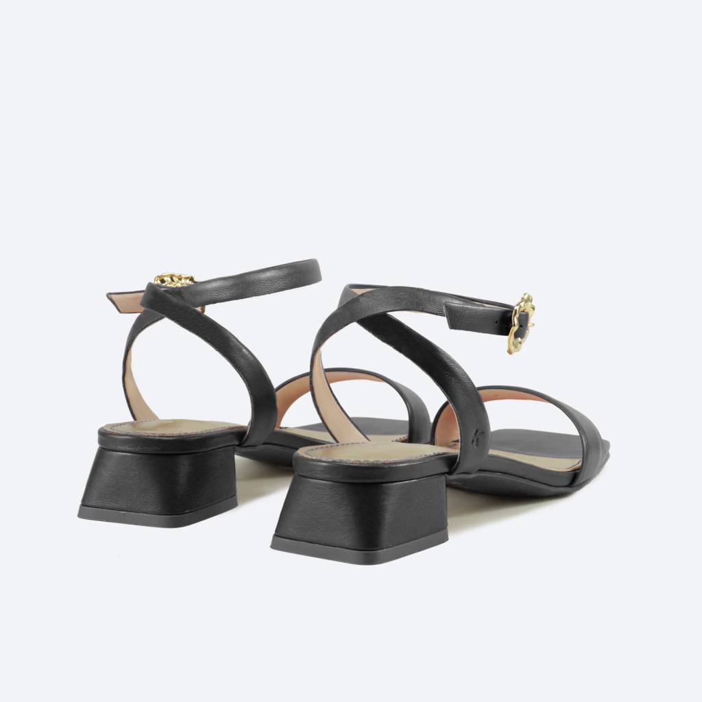 Sandália Preta de Couro com Salto Baixo – Conforto e Versatilidade